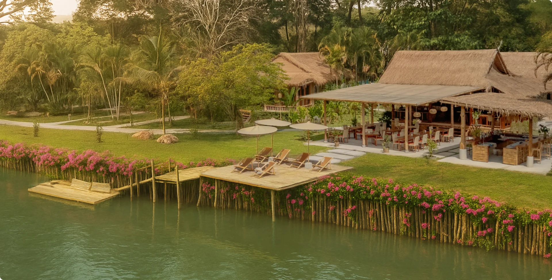 Wake to misty mornings over the river, enjoy breakfast surrounded by birdsong, and unwind with riverside yoga or a soothing massage. Savor authentic Brazilian barbecue at Samba Grill or discover Thai and international dishes crafted with fresh, local ingredients.