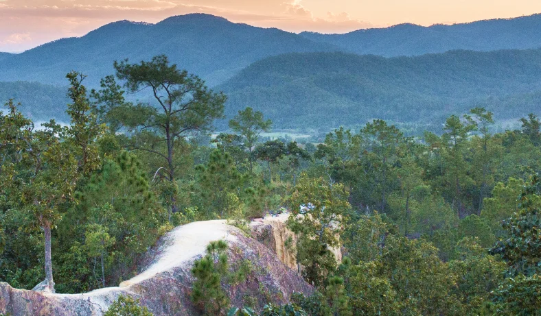 Pai Canyon offers dramatic landscapes carved by time and wind. Walk along narrow ridges and cliffs overlooking pine forests and rice valleys.
